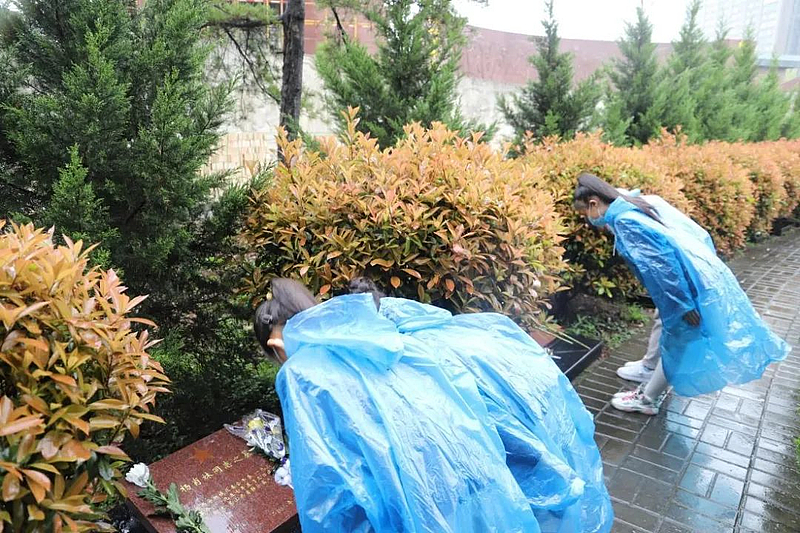 在革命烈士紀(jì)念碑前,團(tuán)員、少先隊(duì)員代表手抬花籃緩步走向革命烈士紀(jì)念碑,向革命先烈敬獻(xiàn)花籃,投資公司和學(xué)校黨員代表整理挽聯(lián)。在一座座英雄墓碑前,全體人員向英雄烈士鞠躬默哀,并將胸前的小白花獻(xiàn)給英烈,表達(dá)對先烈的哀思和敬仰。
