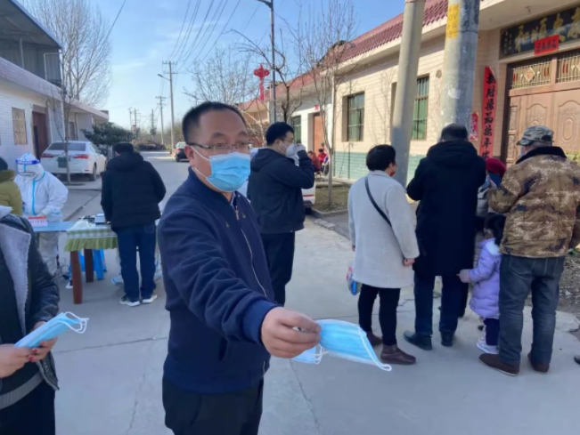 河頭村核酸檢測(cè)點(diǎn),黨員魏廣樂(lè)引導(dǎo)村民保持一米間距,戴好口罩,做好自身防護(hù)。